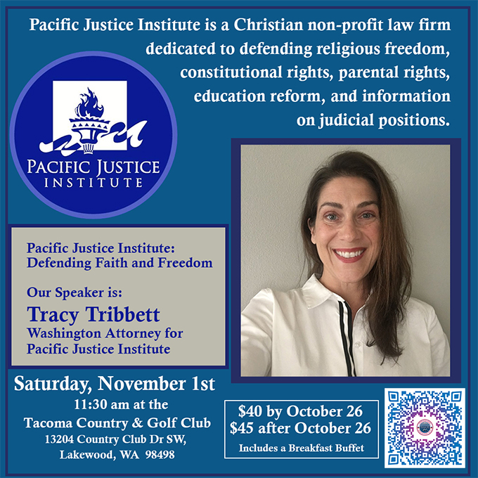 Our speaker is Tracy Tribbett with the Pacific Justice Institute